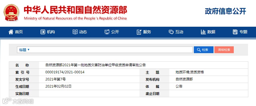 根据《地质灾害防治条例》(国务院令第394号)和《地质灾害危险性评估单位资质管理办法》(国土资源部令第29号)、《地质灾害治理工程勘查设计施工单位资质管理办法》(国土资源部令第30号)、《地质灾害治理工程监理单位资质管理办法》(国土资源部令第31号)、《国土资源部关于修改〈地质灾害危险性评估单位资质管理办法〉等5部规章的决定》(国土资源部令第62号)、《自然资源部关于第一批废止和修改的部门规章的决定》(自然资源部令第5号)的规定,我部开展了2021年第一批地质灾害防治单位甲级资质申请的受理审查工作。经审查,共有370个地质灾害防治单位提交的634个甲级资质申请予以通过,现予公告。
