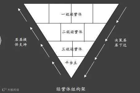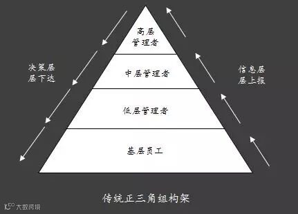 如图7图8比较所示,经营体架构纵向上由传统的正三角形变成倒三角,横向上集中作战转型为分散作战。下级变成了上级,原来的管理者是下命令的,现在变成支持者。
