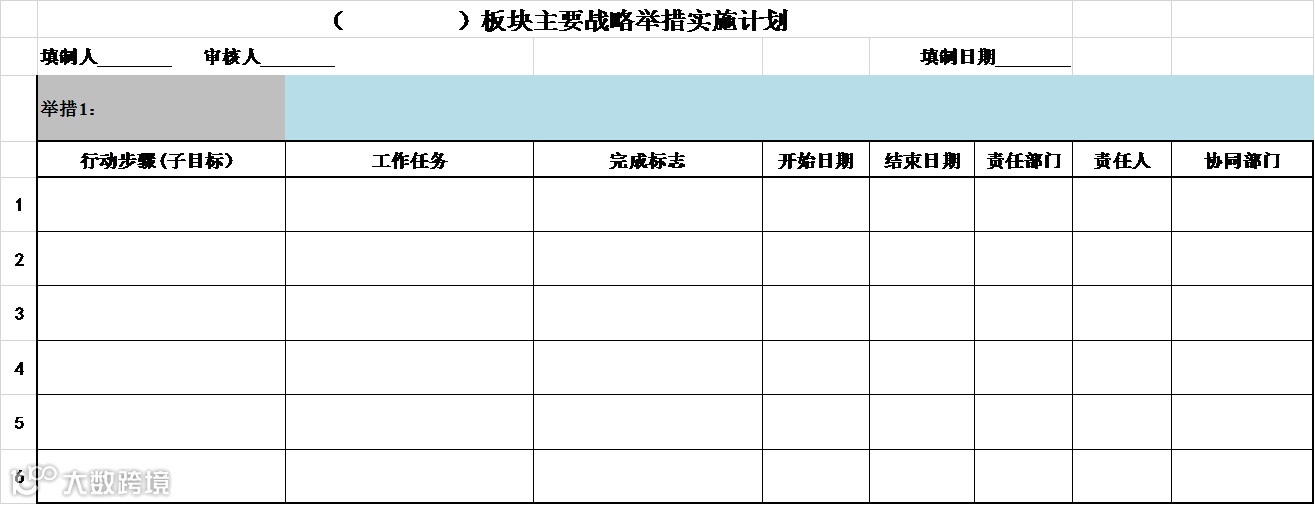 战略地图将战略目标按主题划分,而平衡计分卡则将战略目标和绩效衡量指标紧密地联系在一起。对于将用在实施一系列战略举措的资源,公司还要确定和审批,并为每个战略主题指派一名高管负责到底,按照项目的形式进行实施。对每项战略举措明确工作任务、责任人、完成标准、时间限定等,形成《战略行动计划》(如表1),促成目标达成。