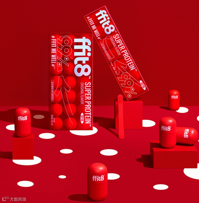 传统蛋白粉包装千篇一律,设计语言从体积到视觉都充斥着“肌肉感”,难以符合当下追求时尚、重度颜控的年轻人喜好。因此,ffit8益生菌蛋白粉从包装设计上就开始颠覆传统,ffit8专利胶囊瓶搭配醒目的红色,充满活力且携带便捷,彻底告别传统蛋白粉超大桶、肌肉感的笨重时代,在目前所有同品类中快速吸睛突围,令人耳目一新。