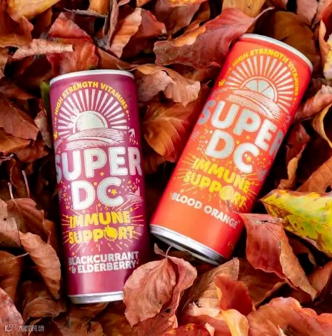 英国软饮料Gusto推出了能增强免疫系统的超级强身维他命饮料--Super DC。Super DC富含抗氧化剂,含有“超级剂量”的维生素D (200% RI)和维生素C (2500% RI,以及维生素A、维生素K、锌和叶酸。提供两种口味:Super DC血橙和Super DC 黑加仑& 接骨木莓。