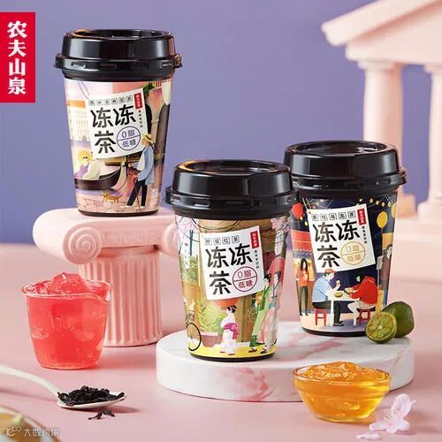 农夫山泉上市之后的首款新品——冻冻茶果味茶饮,在果茶基础上添加了茶冻,共有青桔乌龙茶、柠檬红茶、西柚洛神花茶三种口味。