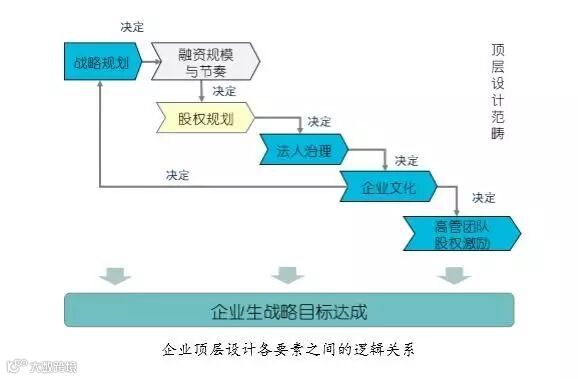 在现代企业发展的现实环境下,通常将“引入战略投资者时的股权规划、企业法人治理体系、企业文化、企业发展战略规划、高管股权激励”提升到企业顶层设计的高度,进行系统规划。