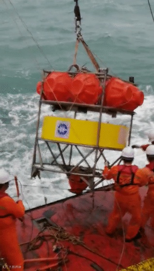 杨源告诉记者,南海海试一般以五一节后和国庆节前为最佳的时间点,以往这个时间段,基本没有在南海海域进行过海试,像今天这样的天气和海况,本来不适宜海上作业的,这对本次设备回收是一次考验,更是对船长驾驶技术的一次考验。毕竟船体太大,掌舵的船长是没法直接看到目标的,只能根据观察人员用对讲机确定方位,然后用船尾靠近目标。
