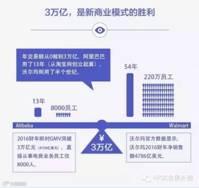 Tips:阿里13年干完了沃尔玛54年的活,而且只用8千员工,沃尔玛是220万员工。