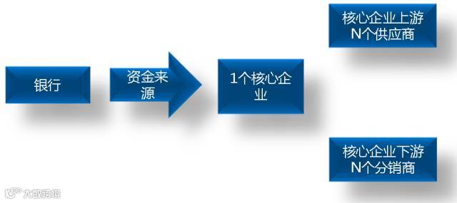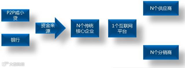 传统意义上的供应链金融,还处在商业银行业务中的供应链核心企业为上下游做担保批量授信模式(即1+N)的阶段。在互联网时代下,也仅仅是进化为N+1+1的多对象模式而已。