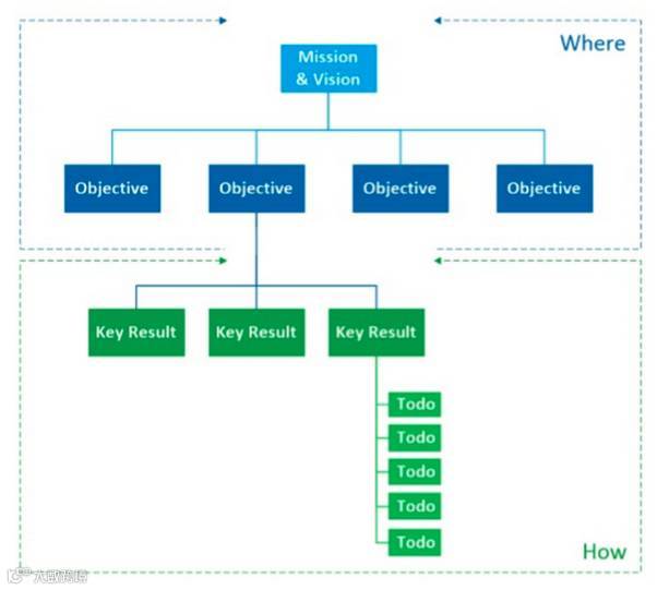 另外,相对于扁平化的公司,层级多的公司更适用OKR,它能解决部门之间的内耗或者方向背离问题。