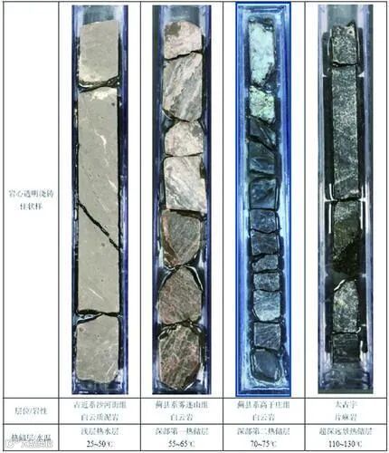 对固结地层岩心进行加工处理,制作岩心透明浇铸柱状样。选择雄安新区地应力钻孔及地热资源调查钻孔岩心约500m,制作了500份岩心透明浇铸柱状样。岩心透明浇铸柱状样涵盖了雄安新区发育的主要地质层位,也是地热资源的主要赋存层位,具有较高的科研、科普价值。