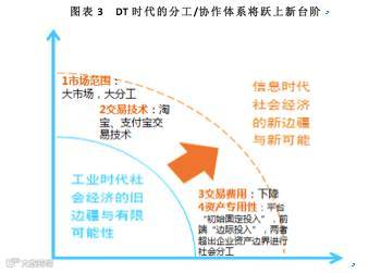 事实上,DT时代的分工/协作,将在多个层次上破解工业时代“分工深化”与“交易成本上升”之间的互相锁定,同时提供一套新高度上的分工与协作体系,这将带来对工业经济之可能性边界的划时代的突破,极大地扩展社会经济的新边疆,提高社会生产力。