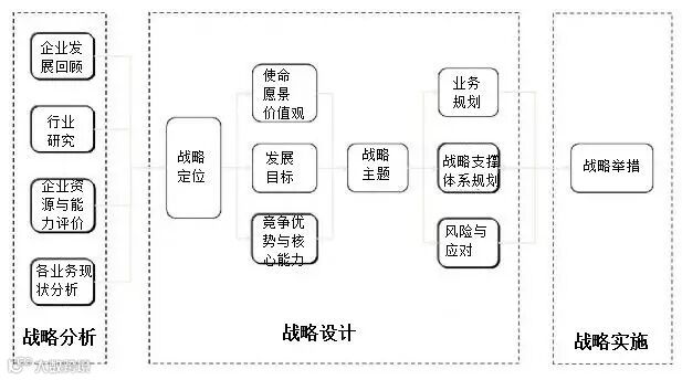 战略规划一般分为战略分析、战略设计和战略实施三个阶段: