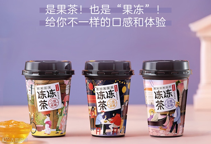 2020年,新式茶饮崛起,农夫山泉向新式茶饮“宣战”,上市后推出了一款可以“嚼着”喝的茶——冻冻茶,区别于传统果味茶饮,其最大的亮点是在果茶基础上添加了茶冻,Q弹嫩滑的口感,还会越嚼越过瘾。值得注意的是,产品食用方式多样,可以像果冻一样,用勺子舀着吃;可以用吸管直接喝;也可以要摇晃成果冻碎,力度越大果冻碎越小。但冻冻茶是否受消费者的认可,还有待市场考验。