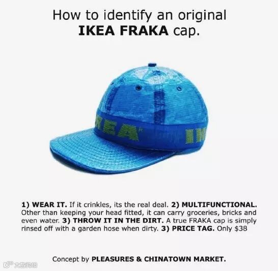 品牌亲自下场追热点,方式又如此有趣,可谓是正中了大众的「嗨点」。这条广告很快得到了美国街头品牌 Pleasures 与 ChinatownMarket 的响应,二者联名推出了一款售价 38 刀,同样名为 Frakta 的「宜家帽」。