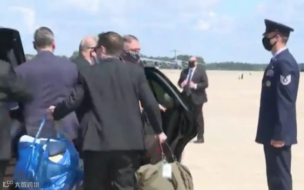 美国国务卿蓬佩奥在出行时,同样会让手下用这蓝袋子打包自己的行李。