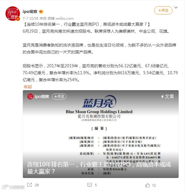 5、蓝月亮港股IPO通过聆讯