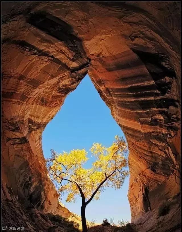 54、位于美国犹他州和亚利桑那州接壤处的天然砂岩凹室。