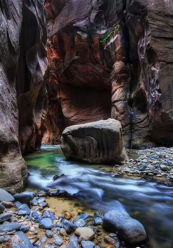 73、美国犹他州锡安国家公园,瀑布下的巨石