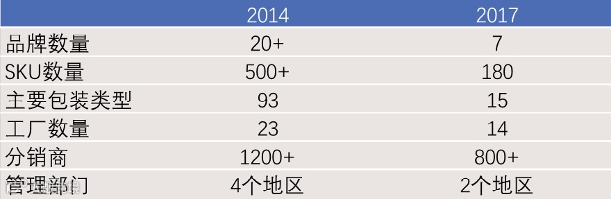 优化重叠产能、降本增效不是一件简单的事。据我们的调研,这样动作嘉士伯从2014年便开始在内部整合进行着,一直持续到2017年告一段落。从啤酒品牌、SKU、瓶型上进行精简,提升生产效率、规模效应、实现资源聚焦。将薄弱市场及供应链重合的工厂关闭,减少了亏损工厂,提升了生产效率。同时还精简公司部门及经销商团队。