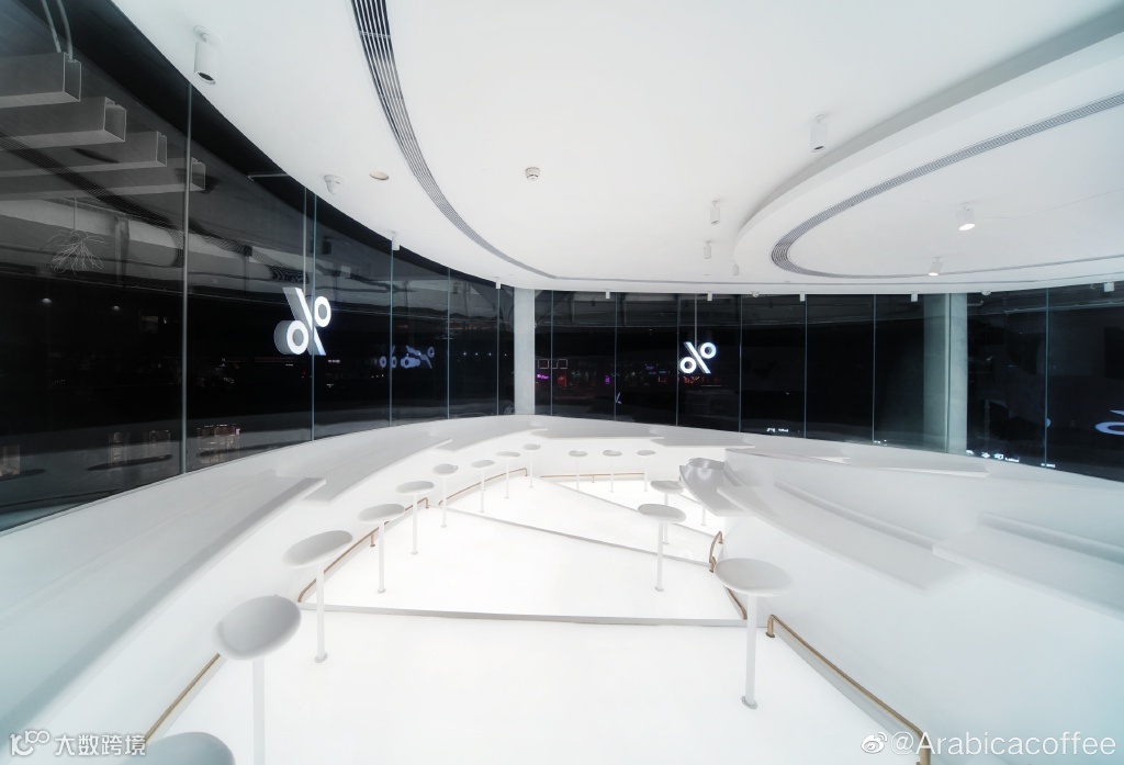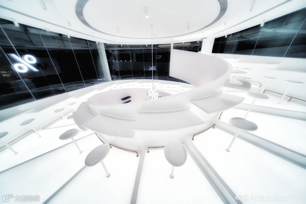 螺旋的设计非常的动感,配合店内纯白的空间,显得极其现代科幻。