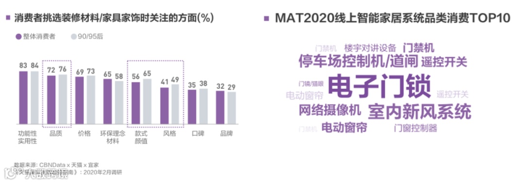 另一方面,宅居生活使得潜在的家装需求被激发,主要体现为以下两方面:一是年轻人对家装品质、颜值及风格更为关注;二是家居的智能化升级成为新趋势,诸如创米小白推出的智慧门、智能摄像机、智能看护灯等产品正在进入入户空间、卧室等更多元的家居场景。