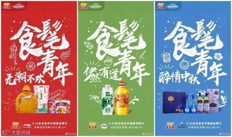 2019年,金龙鱼携手京东开启“超级品牌日”,以“食髦青年”为主题玩起潮流营销,通过“鲜”、“轻”、“颜”、“极”四大方向,结合与之对应的金龙鱼产品及生活态度,定义“食髦”新主张。