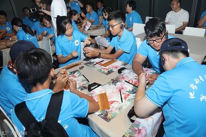 中国国家博物馆是中华文化的祠堂和祖庙,这里收藏的140余万件藏品充分展现和见证了中华5000年文明的血脉绵延与灿烂辉煌。中国地质博物馆和中国国家博物馆共同策划,为两岸青少年量身定制“历史中的文字”主题活动,包括古代中国展厅专题讲解和互动体验课程两部分内容,可谓是极其丰盛的中国传统文化大餐。同学们首先欣赏了国宝级重器、珍品,学习了文字的演化与中华文明的起源,了解了文字背后的历史意义与艺术价值;随后在“小篆春秋”互动体验中,穿越历史,回到“秦朝”,亲手编竹简、写小篆,兴奋不已。