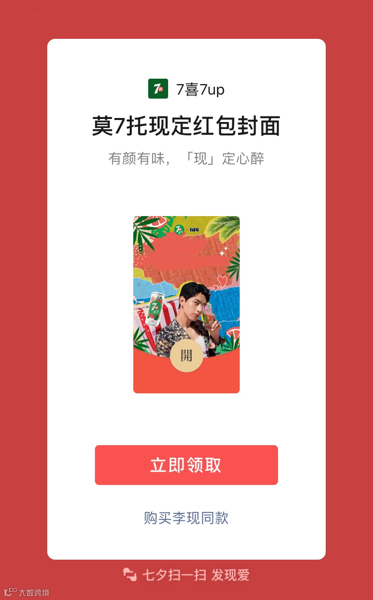 同时,蒙牛纯甄和七喜还分别借助了代言人赵丽颖和李现的明星号召力,以明星形象作为红包封面,激活了粉丝群体的参与热情,让扫一扫比心成为今年七夕备受欢迎的“表白暗语”。