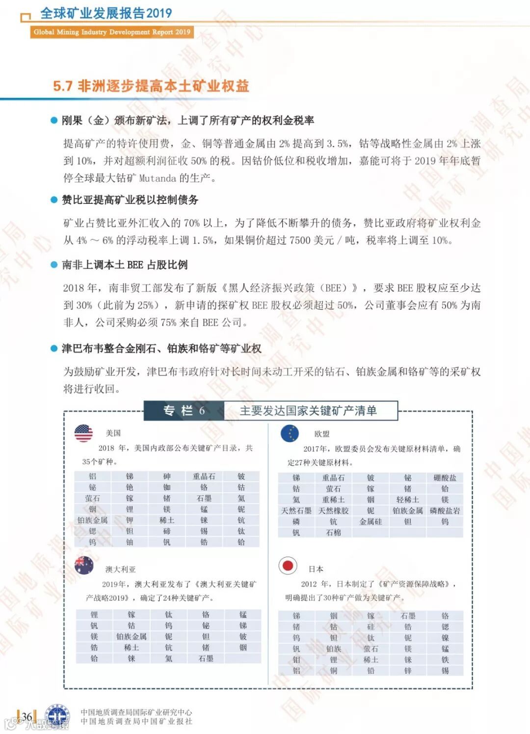 东南亚和非洲部分国家强化本土矿业权益。印度尼西亚、菲律宾、老挝、刚果(金)、坦桑尼亚、赞比亚等亚洲、非洲国家通过调整税费等政策,延伸矿业产业链,强化本土矿业权益。