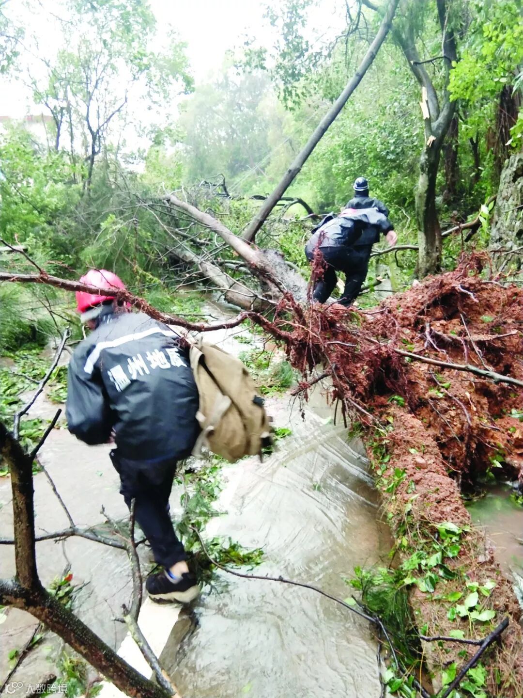 浙江省地球物理地球化学勘查院3个应急小组在灾区彻夜值守,并于10日上午开始在余姚、台州、西湖风景名胜区开展巡查及应急排险工作。