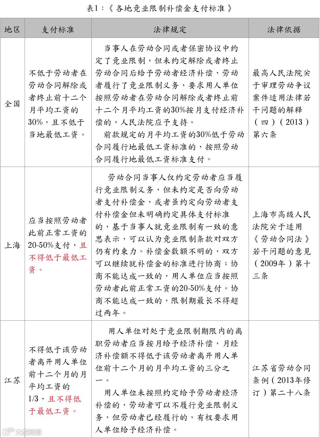 第三、如果在竞业限制期内,单位单方面想要解除约定,需要额外再向劳动者支付三个月补偿金。但总体最低支付标准不低于离职员工在合同解除或终止前的十二个月平均工资的30%,且不低于当地最低工资,如地方规定更高于全国标准的,按较高者执行,具体可见下表1。