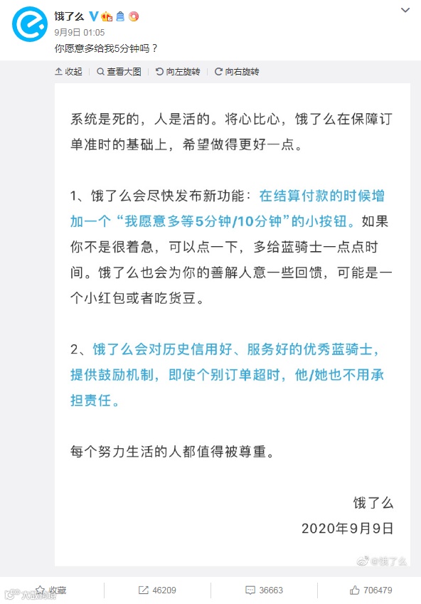 5、外卖骑手成高危职业?饿了么推出多等5分钟功能