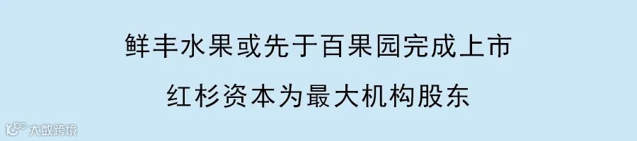 2019年12月30日,成立于1997年、规模仅次于百果园的鲜丰水果同中信证券签署上市辅导协议,初步预计2021年6月完成上市辅导;其曾获得红杉中国、九鼎投资、麦星投资等机构的加持,其中红杉中国为最大外部投资方。