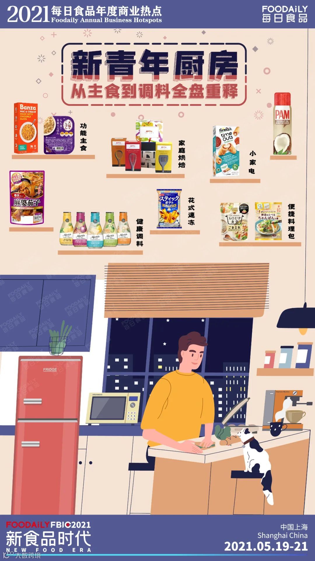 基于对海外前沿消费市场的跟踪解析、对国内市场动态的密切聚焦和行业观察,Foodaily第五年重磅发布2021年度商业热点,并正式提出在新食品时代下加速引领行业的升级和变革的两大食品新动能——【技术重构】和【品牌潮趣】。