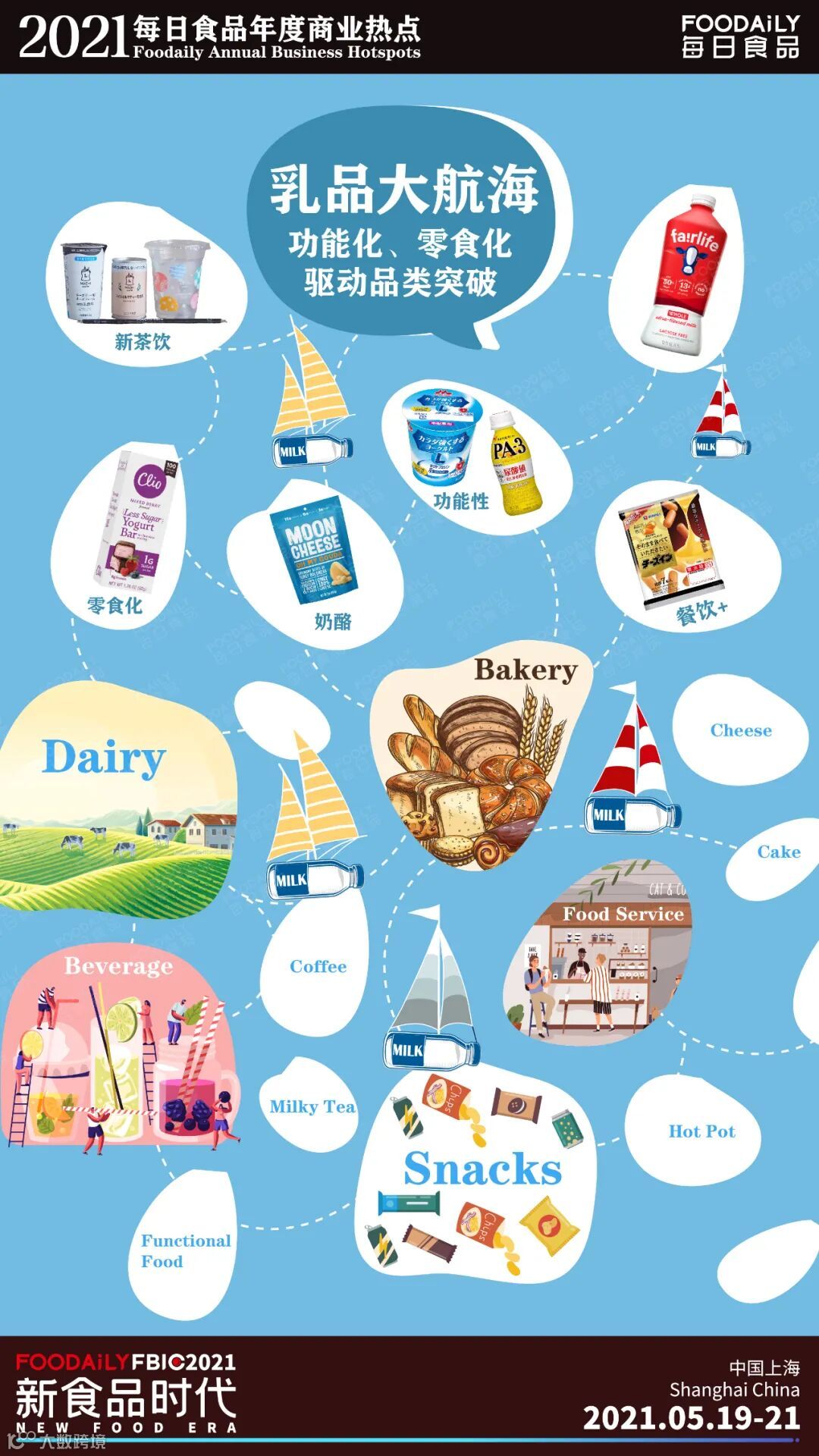 主要涉及的品类:乳品、饮料、零食、烘焙、餐饮、功能性食品