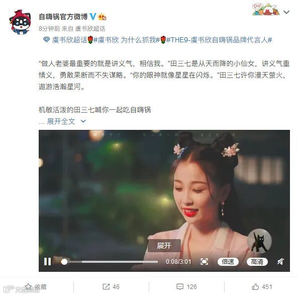 然后,自嗨锅官博就成了虞书欣的个人应援博。