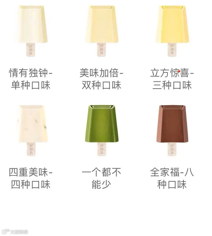 像钟薛高的命名如全家福、中意你、一个都不能少等系列,创造了不同场景的消费需求,买给情侣,买给自己,买给家人,更将与消费者的情感共鸣细分化。