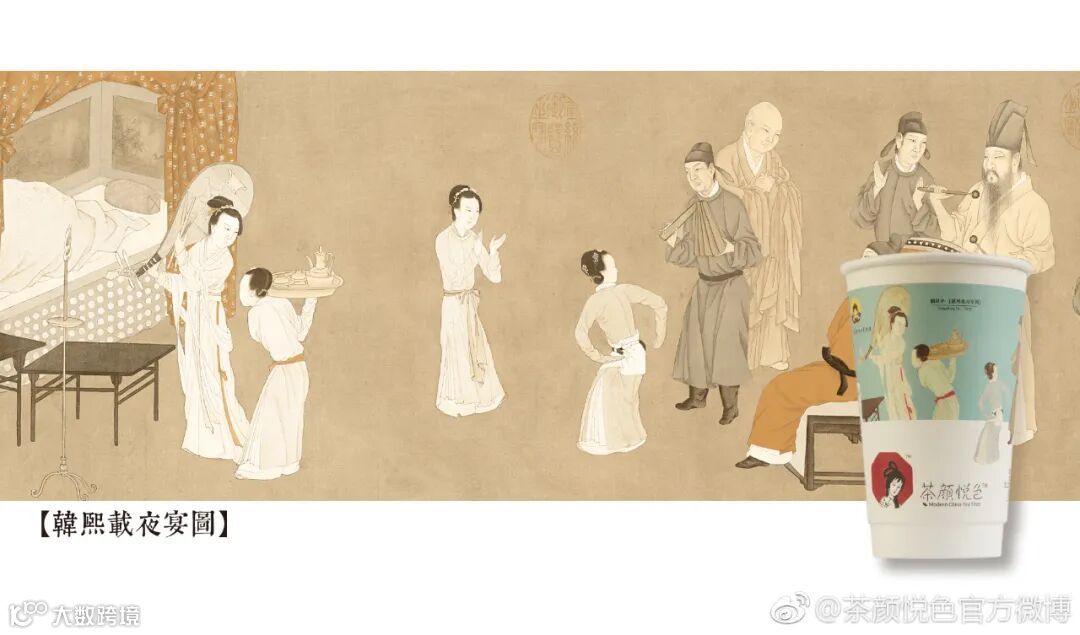 要知道,老板吕良为了拿下宫廷画手郎世宁和其他名画的使用版权,可是花费了上百万!像是千里江山图、韩熙载夜宴图等等,都是下了血本才拿到的使用权!做设计,茶颜悦色是认真的!