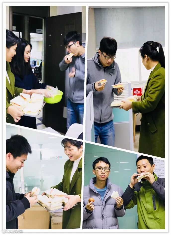 活动现场充满着女员工们的欢声笑语,桌子上整齐摆放着面包、切好的番茄、煎鸡蛋等材料,大家热情高涨,分工明确,相互配合,井然有序,尽情体验着自己动手与相互交流的快乐,制作出的成品也纷纷吸引了男同胞的目光,大家抢着品尝,吃完后还竖起大拇指,表示希望天天都是三八节。活动现场弥漫着幸福的气氛,美味在相互间传递与分享,大家一起用DIY体验点缀这美好的节日。