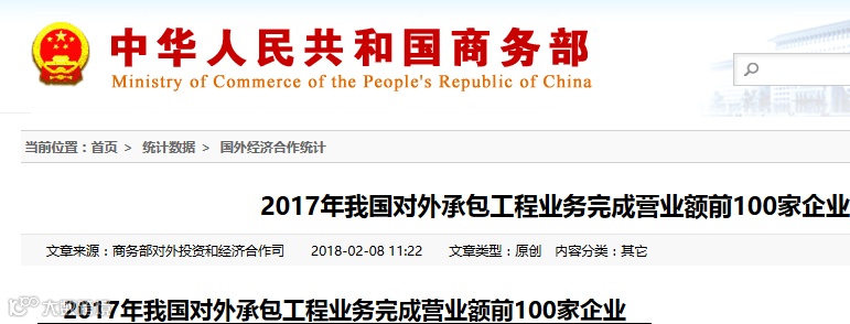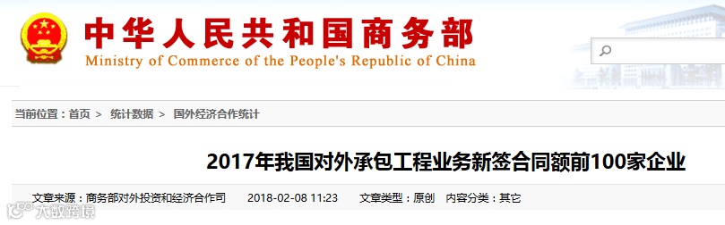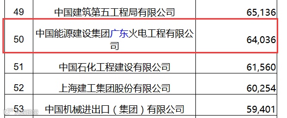 日前,从国家商务部获悉,2017年我国对外承包工程业务新签合同额前100家企业排名名单、我国对外承包工程完成营业额前100家企业排名名单出炉,中国能建广东火电分别位列名单的第25位和50位。