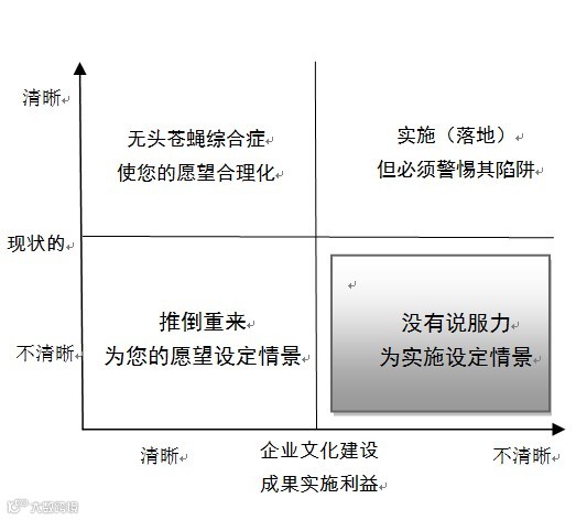 缺乏说服力强大的、清晰的企业文化成果实施情景设定