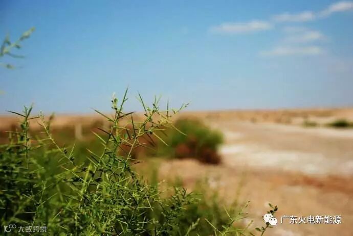 第一次认识骆驼刺是在乌拉特中旗乌兰风电场的草原上,在那片草场上,除了一台台风姿飒爽的风机外,长满了像骆驼峰一样的植物――它叫骆驼刺,那一朵朵绿色点缀着大地,在湛蓝的天空下顽强地扎根于沙地,蓬蓬勃勃地生长。