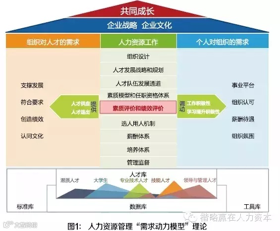 为此,我们提出了人力资源管理的“需求动力模型”理论(见图1)。面对人力资源新常用态,人力资源管理观念中,不能再简单地把人当作为一种生产资源和生产工具,不是一个简单的自然人,而是一个有价值观念、有需求、有目标追求的社会人,个人也要追求成长和发展,因此,新的人力资源管理理念应该以九大人力资源管理内容为基础协同融合组织需求和个人需求,和谐共生,以实现企业和个人的共同成长为最终目标。