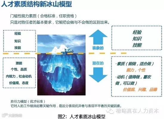 人的潜力是什么?这个问题不断拷问着人类的智慧,心理学家在这个领域已经有了100多年的研究历史,有大量的成果。其中麦克里兰提出的人才素质冰山模型最有代表性,它形象地把潜力和现实能力进行区分,水面下的冰山部分就是我们所说的潜力(见图2)。