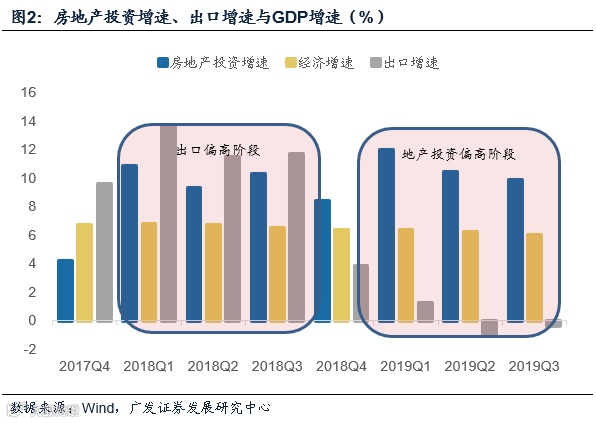 从2018年-2019年的经济增速来看,2018年经济增长6.6%,其中出口和地产投资增速处于偏高阶段(均近10%)。2019年前三季度经济增长6.2%,其中地产投资增速处于偏高阶段(前三季度10.5%)。如果2020年之后的未来五年出口和地产都进入更常态的增速,则隐含的经济增速会进一步有所降低。从对经济短周期的判断来看(2020年上半年补库存),我们估计2020年经济增长速度仍可以在6.0%以上,2020年之后进一步走低。