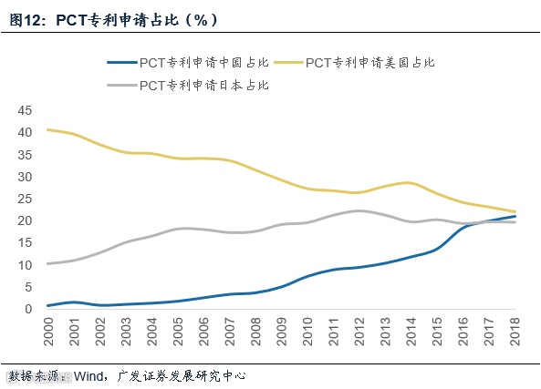 三是产业化应用。从经验规律看,发展中国家若保持技术追赶的连续性,则后发优势就是一个成立的逻辑。目前产业端仍在典型的技术追赶周期中,2018年中国PCT专利申请量已占全球21%;同时“产业基础高级化、产业链现代化攻坚战”已经是比较明确的产业政策导向。这将推动中国制造业进一步转型升级。