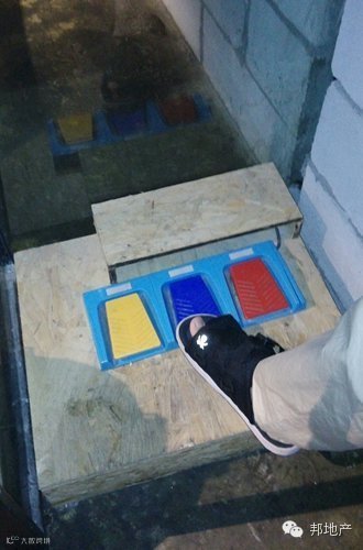 你一定猜不到,最有趣的是什么。那是一个由三色按钮组成的脚踏密码器,你必须按照预先设定的顺序,用脚依次踩下按钮,大门才能打开。