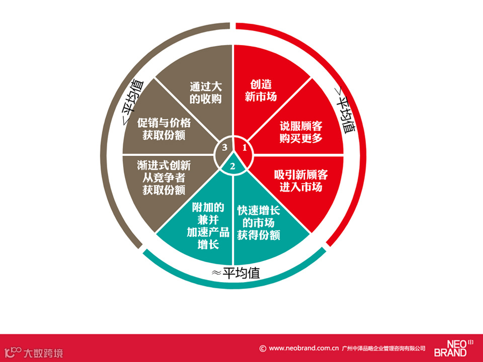 主要包含二个维度九大方法,而如何增长可以从八个方面考虑,其中一部分的增长速度大于平均值,而三部分是低于平均值的。