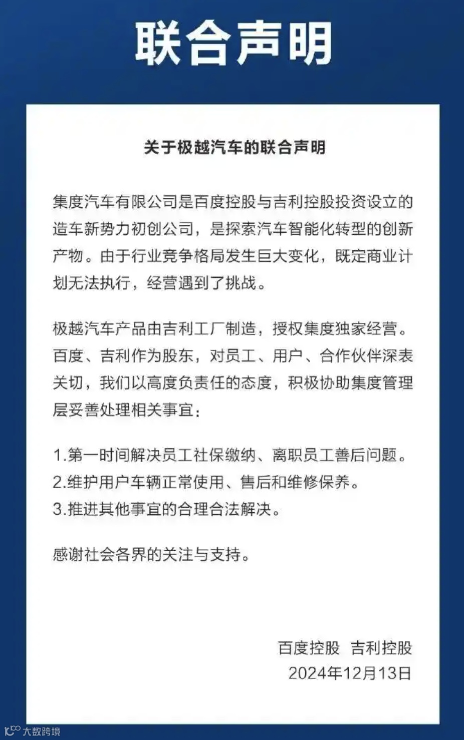 作为大厂亲儿子,吉利是他妈(造车)百度是他爸(出钱,出ai技术),爸妈把娃生出来后,找了个月嫂来养娃(极越CEO夏一平),结果年底一看家底,爸给的70亿抚养费花完了!
