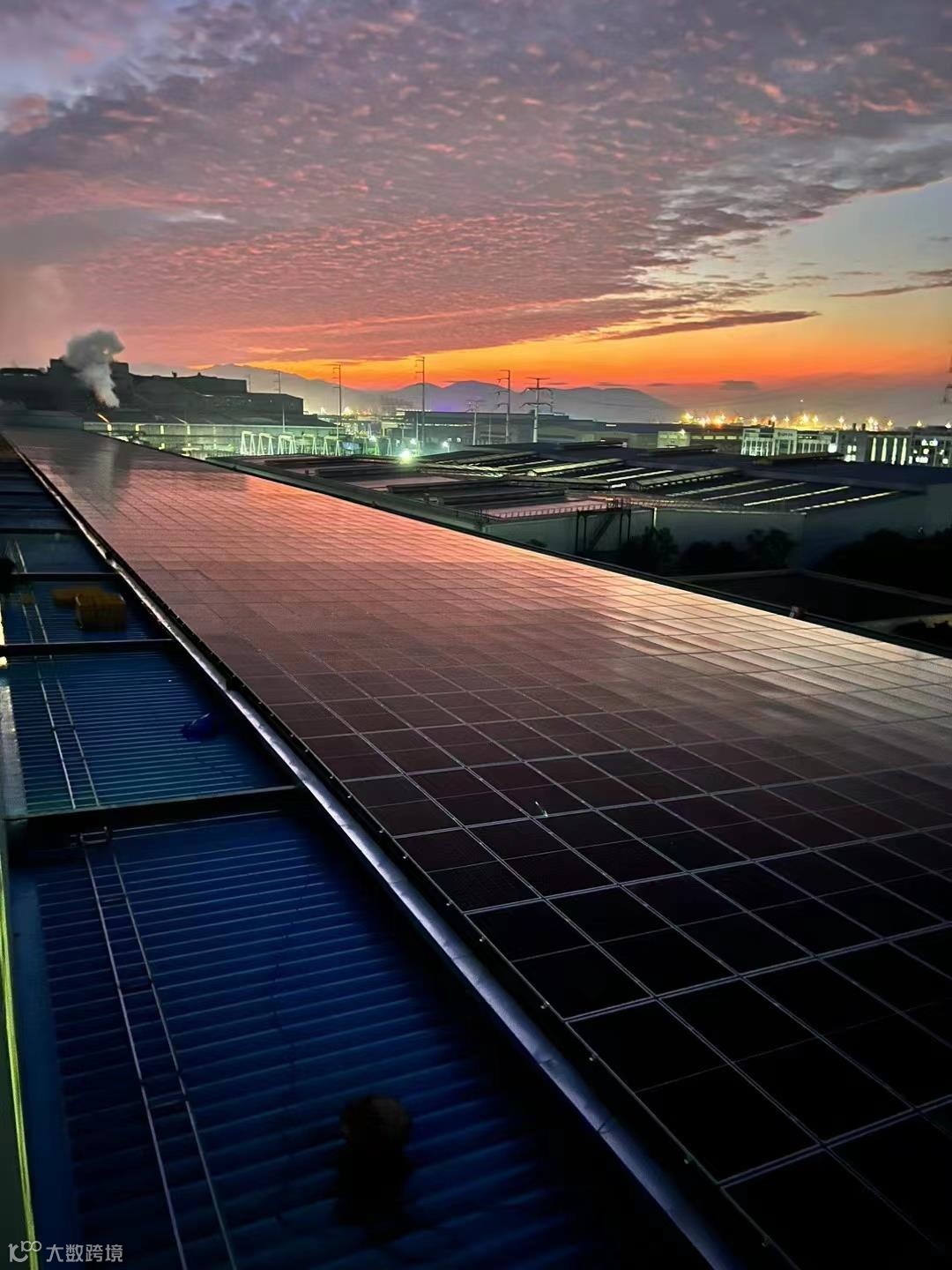 晚霞中的广青项目压延厂屋顶超长光伏阵列