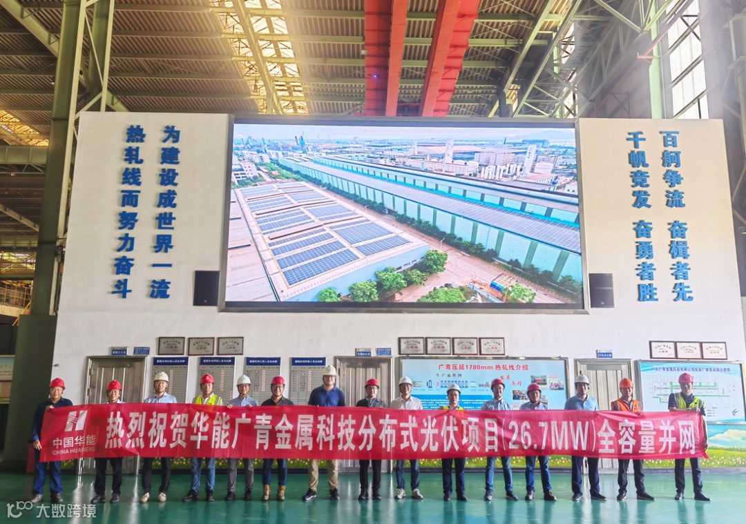 2023年10月24日15时50分,随着压延厂屋顶光伏 5 台逆变器指示灯全部转绿投运,华能广东广青金属科技有限公司分布式光伏项目(26.7MW)(简称:广青一期项目) 实现全容量并网投产,标志着华能广东能源销售有限责任公司首个自行开发建设的大型工业屋顶分布式光伏项目取得圆满成功。