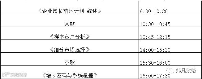 欢迎您参加炜凡致略-企业增长系列课程之《企业增长落地计划》精华班,我们的课程将于2018年9月5-6号,在广州举办,届时炜凡致略创始人:高炜硕老师将亲临现场授课,为您带来实战、实用企业增长落地实操课程内容。